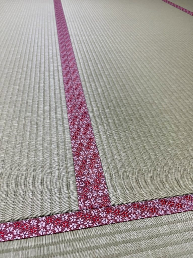 ご要望の畳縁が廃番になっていたためご希望に沿うことができなかったものの、相談の上、花柄の鮮やかな畳縁をご提案させて頂きました。