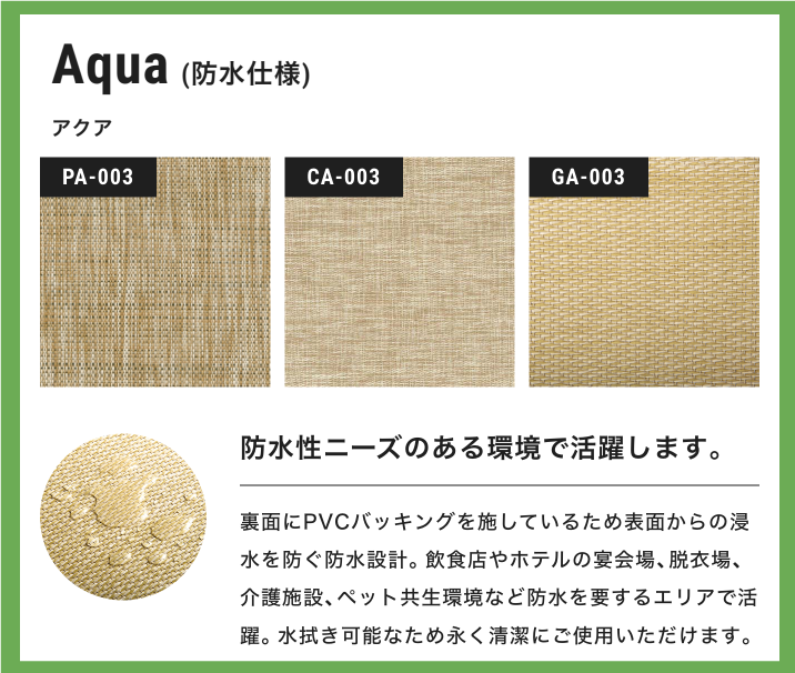 滑りにくく、防水仕様でお手入れがしやすいため、ペットと一緒にお住まいのご家庭にピッタリの床材です。