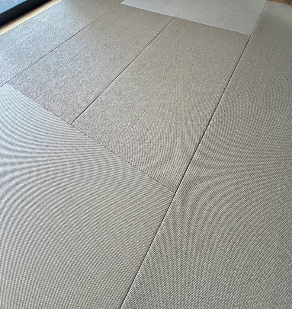 実際に完成した畳をご覧頂くと「ヘリのある畳よりもスッキリとした印象になった」と仕上がりにも大満足されていました。
